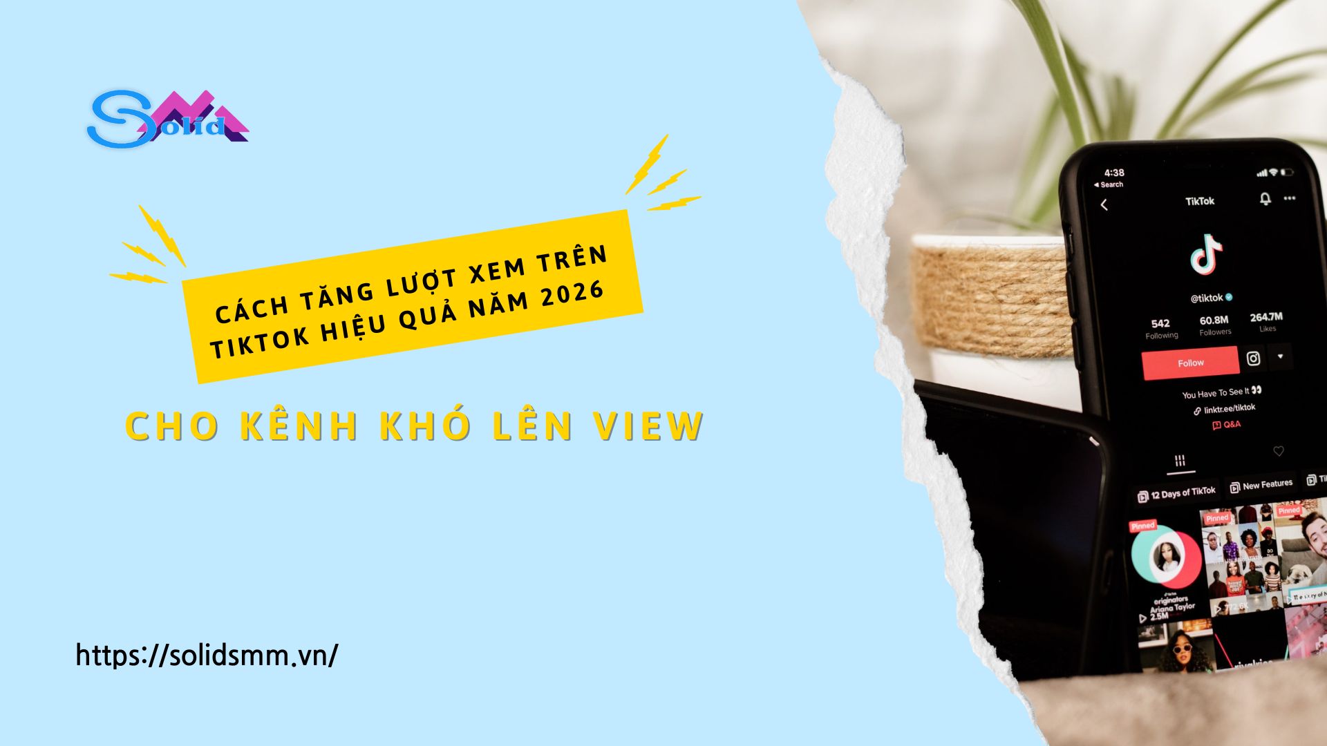 Khi kết hợp những cách trên sẽ mang lại hiệu quả hơn. Vậy, dịch vụ tăng view TikTok chính là giải pháp giúp kênh khó lên view có đà phát triển. Nhiều người đã tìm đến dịch vụ tăng view TikTok uy tín, chất lượng. Tuy nhiên, hiện nay trên thị trường có rất nhiều địa chỉ scam xuất hiện cung cấp những dịch vụ kém chất lượng, ảnh hưởng đến sự phát triển của kênh. Với nhiều năm hoạt động trong lĩnh vực SMM Panel, SolidSMM.vn đã hỗ trợ nhiều kênh TikTok tăng trưởng view nhanh, hiệu quả, an toàn. Khi có lượng view ban đầu chất lượng sẽ tạo đòn bẩy để phát triển hơn. Khi lựa chọn chúng tôi, bạn sẽ nhận được: